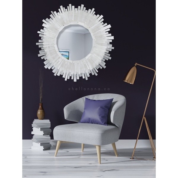a mirror will always be an object that evokes supreme beauty with an inexplicable mystical appreciation. this stunning wall mirror represents an attitude, and the characteristics of a critical “époque” that shaped french history. handcrafted with genuine minerals or gemstones, this piece adds the magical lavish lifestyle touch to your space